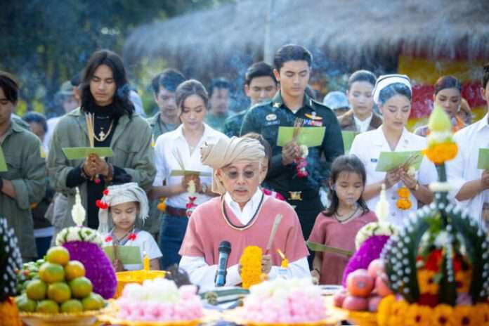 โดยเป่าจินจง จัดกิจกรรมสนุก เปิดหมู่บ้านคาเซ เขาชนไก่ จ.กาญจนบุรี ที่ทุ่มทุนสร้างเพื่อใช้ถ่ายทำฉากสำคัญในเรื่องให้แฟนคลับเข้าชม ร่วมเล่นเกมส์ และถ่ายรูปกับนักแสดง จนฤกษ์ดี 16.09 น. อาตู่ นพพลก็เริ่มพิธีบวงสรวง ต่อด้วยมินิคอนเสิร์ตเพลงประกอบละครที่ร้องโดยนักแสดงทุกคน เรียกเสียงกรี๊ดแน่นๆ จากแฟนคลับ พิเศษสุดด้วยการฉายตัวอย่างละครยิ่งใหญ่ครั้งแรก ทำเอาทั้งนักแสดง แฟนคลับน้ำตาคลอ ซาบซึ้งกับเรื่องราวการต่อสู้เพื่อรักษาแผ่นดินเกิด