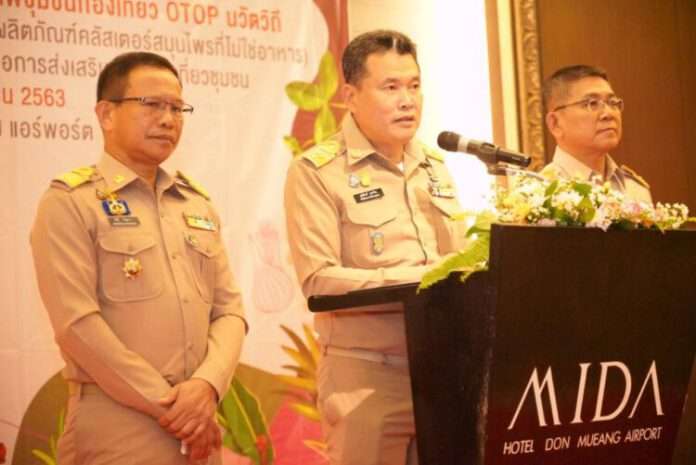วันที่ 9 พฤศจิกายน 2563 เวลา 09.00 น. นายสุทธิพงษ์ จุลเจริญ อธิบดีกรมการพัฒนาชุมชน กระทรวงมหาดไทย เป็นประธานพิธีเปิดโครงการพัฒนาศักยภาพชุมชนท่องเที่ยว OTOP นวัตวิถี กิจกรรมยกระดับและพัฒนาเพื่อจำหน่ายให้นักท่องเที่ยว (ผลิตภัณฑ์คลัสเตอร์สมุนไพรที่ไม่ใช่อาหาร) ภายใต้กิจกรรมพัฒนาศักยภาพผู้ประกอบการเพื่อการส่งเสริมการท่องเที่ยวชุมชน มีผู้เข้าอบรมประกอบด้วยเจ้าหน้าที่กรมการพัฒนาชุมชน และผู้ประกอบการ OTOP จากทั่วทุกภูมิภาคจำนวนกว่า 131 ราย จาก 51 จังหวัด โดยมีนายสุรศักดิ์ อักษรกุล ผู้อำนวยการสำนักส่งเสริมภูมิปัญญาท้องถิ่นและวิสาหกิจชุมชน (พช.) กล่าวรายงาน ณ โรงแรมไมด้า ดอนเมือง แอร์พอร์ต เขตหลักสี่ กรุงเทพฯ