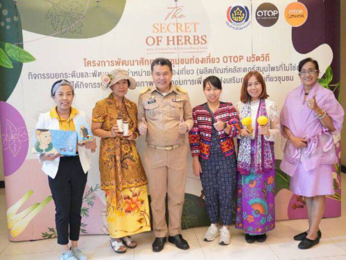 ทั้งนี้การอบรมตามโครงการพัฒนาศักยภาพชุมชนท่องเที่ยว OTOP นวัตวิถี กิจกรรมยกระดับและพัฒนาเพื่อจำหน่ายให้นักท่องเที่ยว (ผลิตภัณฑ์คลัสเตอร์สมุนไพรที่ไม่ใช่อาหาร) ภายใต้กิจกรรมพัฒนาศักยภาพผู้ประกอบการเพื่อส่งเสริมการท่องเที่ยวชุมชนในครั้งนี้ จัดขึ้นในรูปแบบการประชุมเชิงปฏิบัติการ (Workshop) ตามแนวคิด “secret of herbs ยกระดับสมุนไพรไทยสู่สากล” เพื่อเป็นการเพิ่มศักยภาพ ผู้ผลิต ผู้ประกอบการชุมชนOTOP นวัตวิถี ให้มีความพร้อมในการพัฒนาผลิตภัณฑ์ตามอัตลักษณ์เฉพาะของหมู่บ้าน ทั้งยังยกระดับผลิตภัณฑ์เพื่อให้มีความพร้อมในการรองรับนักท่องเที่ยวสามารถสร้างอาชีพเพิ่มรายได้ให้ประชาชนในชุมชน ผ่านกิจกรรมอบรมออกแบบการพัฒนาผลิตภัณฑ์คลัสเตอร์สมุนไพรที่ไม่ใช่อาหารโดยการดึง 8 เสน่ห์ของชุมชนมาสร้างมูลค่าเพิ่มให้สินค้าของที่ระลึกของชุมชน (อาหาร การแต่งกาย ที่อยู่อาศัยประเพณี ภาษา อาชีพ ความเชื่อ และศิลปะในพื้นที่) เปลี่ยนจากแนวความคิดเดิมที่มุ่งเน้นการผลิตหรือตัวผลิตภัณฑ์ (Product Oriented) มาเป็นการเข้าถึงความต้องการที่ซ่อนอยู่ (Hidden Need) เพื่อค้นหากลุ่มลูกค้าใหม่ ๆ ,การให้ความรู้ หัวข้อ “ขายอย่างไร ขายที่ไหน ให้โดนใจลูกค้า (Content / Channel)”และค้นหา 8 เสน่ห์วิถีชุมชน เพื่อการสร้างผลิตภัณฑ์ตรงใจ (Branding) ,กิจกรรม Work Shop ผู้ประกอบการและผู้เชี่ยวชาญได้แลกเปลี่ยนกันเพื่อเก็บข้อมูลผลิตภัณฑ์วิเคราะห์ศักยภาพและจุดอ่อนของผลิตภัณฑ์ หรือบรรจุภัณฑ์หรือฉลาก จำนวน 131 ผลิตภัณฑ์ โดยทีมผู้เชี่ยวชาญด้านสมุนไพร นักพัฒนาและออกแบบผลิตภัณฑ์บรรจุภัณฑ์ และด้านการตลาด โดยมุ่งให้ผู้ผลิตภัณฑ์ผู้ประกอบการในชุนชนท่องเที่ยว OTOP นวัตวิถี คลัสเตอร์สมุนไพรที่ไม่ใช่อาหาร สามารถพัฒนาผลิตภัณฑ์ให้มีคุณภาพและตอบโจทย์ตามความต้องการของลูกค้าได้เป็นอย่างดี