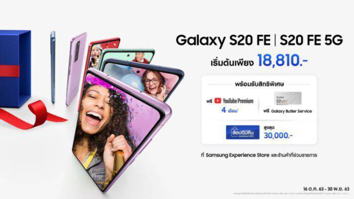 หากคุณเป็นคนรุ่นใหม่ที่กำลังมองหาแก็ดเจ็ตที่สะท้อนความเป็นตัวตน Galaxy S20 FE l S20 FE 5G คือคำตอบที่ใช่ ด้วยความมีสไตล์ของทั้ง 6 สีสัน พร้อมฟีเจอร์และนวัตกรรมเด่น ทั้งกล้องระดับโปร 3 เลนส์ ที่ช่วยให้ถ่ายรูปได้สวย สนุก แม้อยู่ไกลก็ถ่ายใกล้ได้ ด้วย Space Zoom 30x กล้องหน้า 32MP รวมถึงฟีเจอร์กล้อง AI สุดล้ำ ที่ให้ถ่ายรูปได้สวยแม้แสงน้อย ด้วยโหมด Bright Night และ โหมด Single Take ที่ถ่ายครั้งเดียว ได้ทั้งภาพนิ่งและวิดีโอ รวมถึงเครื่องสเปคแรง ตอบสนองไว รองรับ 5G ด้วยชิปเซ็ทระดับแฟลกชิป Snapdragon 865 และหน้าจอ 120Hz โดยวางจำหน่ายในราคาเริ่มต้นเพียง 18,810 บาทเท่านั้น