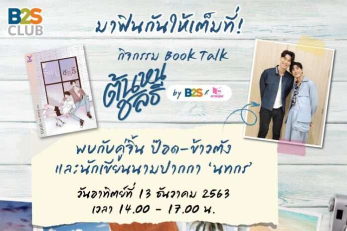 มีข่าวดีมาบอกอีกแล้วจ้า บีทูเอส ร่วมกับ จีเอ็มเอ็มทีวี และ Deep Publishing จับคู่จิ้นที่กำลังมาแรง เจ้าของแฮชแทก #ป๊อดหิวข้าว จากซีรีส์ ต้นหนชลธี ซีรีส์ Y รักสดใส เรื่องราวของเด็กหนุ่มหน้าใสที่หลงรักพี่ชายแสนซื่อข้างบ้าน “ป๊อด-ศุภกร ศรีโพธิ์ทอง” และ “ข้าวตัง-ธนวัฒน์ รัตนกิจไพศาล” พร้อมด้วย “นทกร” นักเขียนนิยายชื่อดัง เจ้าของผลงาน ที่จะมาถ่ายทอดแง่มุมความคิดผ่านตัวหนังสือ ในงาน Book Talk  ต้นหนชลธี by B2SXสถาพรบุ๊คส์ นอกจากนี้ ภายในงานยังมีกิจกรรมสนุก ๆ เพื่อลุ้นรับภาพพร้อมลายเซ็น ป๊อด – ข้าวตัง, กรอบรูปภาพ และของที่ระลึกจากบีทูเอส สำนักพิมพ์ DEEP Publishing และสถาพรบุ๊คส์ อีกด้วย