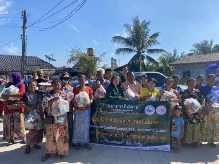 ธนาคารอิสลามแห่งประเทศไทย (ไอแบงก์) โดย นางสาวเสาวลักษณ์ เมฆเกรียงไกร ผู้จัดการอาวุโสบริหารสาขา สาขานครศรีธรรมราช ผู้แทนสำนักงานเขตสุราษฎร์ธานี มอบถุงปันสุข จำนวน 400 ถุง ใน”พิธีส่งมอบความช่วยเหลือผู้ประสบภัยและปล่อยขบวนคาราวานนำถุงยังชีพลงพื้นที่ประสบภัยในจังหวัดนครศรีธรรมราช” แก่ ดร.วิสุทธิ์ บิลล่าเต๊ะ ประธานสภาเครือข่ายช่วยเหลือด้านมนุษยธรรม สำนักจุฬาราชมนตรี โดยมี นายอัสนาวี มุคุระ ประธานคณะกรรมการอิสลามประจำจังหวัดกระบี่ พร้อมด้วยประธานสภาเครือข่ายช่วยเหลือด้านมนุษยธรรมประจำภาคใต้ตอนบน และคณะกรรมการอิสลามประจำจังหวัดนครศรีธรรมราช ร่วมเป็นสักขีพยาน ในโอกาสเดียวกันนี้ ผู้จัดการสาขาและพนักงานในสำนักงานเขตสุราษฎร์ธานี ได้แก่ สาขานครศรีธรรมราช, สาขาทุ่งสง, สาขาสุราษฎร์ธานี และสาขาเกาะสมุย ได้เข้าร่วมงานพร้อมทั้งลงพื้นที่แจกจ่ายถุงปันสุขให้กับพี่น้องชาวนครศรีธรรมราชอีกด้วย ณ มัสยิดกลางนครศรีธรรมราช เมื่อวันอังคารที่ 8 ธันวาคม 2563 ที่ผ่านมา