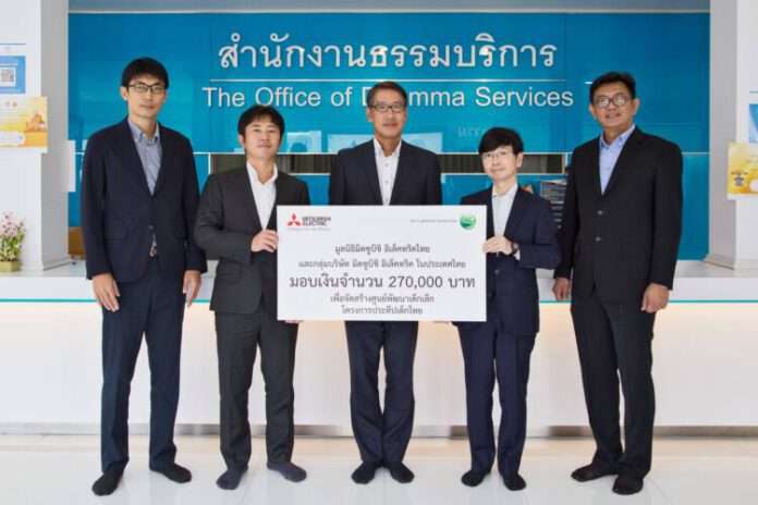 มูลนิธิมิตซูบิชิ อิเล็คทริคไทย นำโดย นายฮิโระอากิ คอนโด้ รองประธานกรรมการ นายฮิซาชิ ฮิรากิ กรรมการและเลขานุการ และนายกริช ทองนาค กรรมการ พร้อมด้วยผู้แทนจากกลุ่มบริษัท Mitsubishi Electric ในประเทศไทย ร่วมถวายเงินจำนวน 270,000 บาท เพื่อสนับสนุน “โครงการประทีปเด็กไทย” แด่ พระครูปลัดบุรมณ์ เตชธมฺโม ผู้ช่วยเจ้าอาวาสวัดธรรมมงคลฯ เพื่อสมทบทุนสร้างศูนย์พัฒนาเด็กเล็กให้ครอบคลุมพื้นที่ทั่วประเทศไทย ซึ่งมูลนิธิมิตซูบิชิ อิเล็คทริคไทย สนับสนุนโครงการดังกล่าวอย่างต่อเนื่องเป็นปีที่ 4