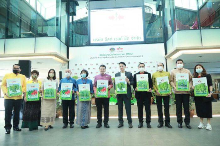 ด้าน นายวิชัย เหล่าเจริญพรกุล ผู้จัดการทั่วไป กล่าวว่า รู้สึกเป็นเกียรติอย่างยิ่งที่ได้เป็นตัวแทน บริษัท อีสท์ เวสท์ ซีด จํากัด มอบเมล็ดพันธุ์ผักตราศรแดง แก่กรมการพัฒนาชุมชน เพื่อแจกจ่ายให้กับประชาชนทั่วประเทศไทย จากโครงการ ปฏิบัติการ 90 วัน ปลูกผักสวนครัวเพื่อสร้างความมั่นคงทางอาหาร ครั้งที่ 1 เราได้ทำร่วมกับทางกรมการพัฒนาชุมชน เมื่อเกิดวิกฤตโควิด-19 ครั้งแรกนั้น ทางเราได้ผลตอบรับเป็นอย่างดีมาก เมล็ดพันธุ์ที่พี่น้องประชาชนนำไปปลูกแล้วได้ผลผลิตอย่างยอดเยี่ยม มีคุณภาพที่ดีทานได้ตลอดปี ต้องขอขอบคุณท่านอธิบดีกรมการพัฒนาชุมชน ที่ให้โอกาสกับทางเราเป็นส่วนหนึ่งในการขับเคลื่อนกิจกรรมดีๆ ซึ่งแนวคิดนี้ตรงกับปณิธานของมิสเตอร์ ไซมอน แนน์ กรู๊ท ผู้ก่อตั้งบริษัทที่ท่านกล่าวไว้ว่า “เมล็ดพันธุ์ที่ดีสามารถเปลี่ยนชีวิตคนนับล้าน” สามารถช่วยเหลือพี่น้องประชาชนในสถานการณ์แพร่ระบาดโควิด-19 นี้ ซึ่งสอดคล้องกับแนวทางของกรมการพัฒนาชุมชน เพื่อสร้างความมั่นคงทางอาหาร ลดรายจ่าย เพิ่มรายได้แก่ประชาชน ซึ่งเมล็ดพันธุ์นี้ อาจเป็นส่วนเล็กๆ ในการช่วยเหลือสังคม แต่ถือว่าเป็นส่วนหนึ่งของห่วงโซ่อาหาร ที่เราสามารถมีแหล่งอาหารภายในครัวเรือน สร้างความมั่นคงทางอาหาร ให้กับประชาชนในสภาวะการแพร่ระบาดของไวรัสโควิด-19 เราจึงมุ่งมั่นสร้างมาตรฐานสินค้าที่ดีที่สุด เพื่อสร้างความมั่นคงให้กับเกษตรกรและประชาชน ทางบริษัทจึงไม่ลังเลที่จะเข้าร่วมเป็นภาคีเครือข่ายกับกรมการพัฒนาชุมชนในการขับเคลื่อนโครงการ เพื่อช่วยเหลือประชาชนที่ได้รับผลกระทบจากการแพร่ระบาดโควิด-19 ระลอกที่ 2 นอกจากนี้ ยังให้สิทธิแก่ผู้เข้าร่วมโครงการ หน่วยงานภาครัฐ เอกชน ที่เข้าร่วมโครงการ ซื้อเมล็ดพันธุ์ 1 แถม 1 และยังมีเจ้าหน้าที่ภาคสนามที่มีความรู้และความเชี่ยวชาญด้านการปลูกผัก ถ้าหน่วยงานหรือประชาชนที่เข้าร่วมโครงการ ต้องการให้เจ้าหน้าที่ภาคสนามของเราไปมอบองค์ความรู้ด้านการปลูกหรือการทำแปลงสาธิต ก็สามารถติดต่อมาที่บริษัทได้เลย ดังนั้นจึงเป็นเกียรติอย่างยิ่งที่บริษัท อีสท์ เวสท์ ซีด จำกัด ได้มีโอกาสเป็นส่วนหนึ่งใน โครงการปฏิบัติการ 90 วัน ปลูกผักสวนครัวเพื่อสร้างความมั่นคงทางอาหาร ครั้งที่ 2 จากเมล็ดพันธุ์ที่ดี มีมาตรฐาน ของบริษัทฯ จะช่วยเป็นจุดเริ่มต้นของความสุขปลูกได้ เพื่อสร้างความมั่นคงทางอาหาร ให้ประชาชนในประเทศไทยของเรารอดพ้นจากวิกฤตในครั้งนี้