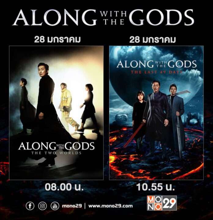 จัดหนักของดี ด้วยหนังแฟนตาซีเกรดพรีเมี่ยมจากเกาหลี สำหรับช่อง “MONO29” (โมโนทเวนตี้ไนน์) ฟรีทีวีที่มีหนังดี ซีรีส์ดังมากที่สุด ขยันเอาใจคอหนังไม่เปลี่ยนแปลง ล่าสุดส่งของดีลงโปรแกรม “ฮิต มูฟวี่” (Hit Movies) กับแพ็คหนังแอ็คชั่นแฟนตาซีที่เคยทุบสถิติ บ็อกซ์ ออฟฟิศเกาหลีมาแล้ว เสิร์ฟมาให้แฟนคลับได้ชมกันแบบต่อเนื่องสองภาครวด ในวันพฤหัสบดีที่ 28 มกราคมนี้ ตั้งแต่เวลา 08.00 น. เป็นต้นไป พบกับภาพยนตร์เรื่อง “ฝ่า 7 นรกไปกับพระเจ้า” (Along With the Gods: The Two Worlds) และต่อด้วย “ฝ่า 7 นรกไปกับพระเจ้า 2” (Along With the Gods: The Last 49 Days) การันตีด้วยทัพนักแสดงคุ้นหน้า มากฝีมือ “ฮา จองอู (จากเรื่อง The Closet) , จู จีฮุน” (จากเรื่อง Kingdom) , คิม ฮยางกี” และดาราเสริมทัพอีกเพียบ อย่าพลาดความสนุก รับชมได้ทาง ช่องโมโน 29 หรือ แอพพลิเคชั่น MONO29