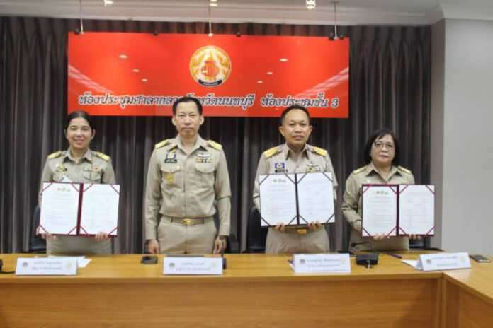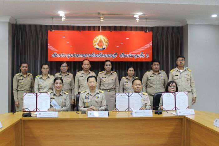 โดยมี นางรักใจ กาญจนะวีระ พัฒนาการจังหวัดนนทบุรี ร่วมกับ นายชาญวิชญ์ สิริสุนทรานนท์ โยธาธิการและผังเมืองจังหวัดนนทบุรี และนางสาวอินทิรา เจียระสุพัฒน์ ท้องถิ่นจังหวัดนนทบุรี ร่วมลงนามในการประสานความร่วมมือโครง การพัฒนาพื้นที่ต้นแบบการพัฒนาคุณภาพชีวิตตามหลักทฤษฎีใหม่ประยุกต์สู่ “โคก หนอง นา โมเดล” จังหวัดนนท บุรี โดยมีผู้อำนวยการกลุ่มงาน พัฒนาการอำเภอทั้ง 6 อำเภอ ท้องถิ่นอำเภอเมืองนนทบุรี และผู้แทนจากหน่วยงานสำนักงานโยธาธิการและผังเมืองจังหวัดนนทบุรี ร่วมเป็นสักขีพยานในพิธีลงนามบันทึกข้อตกลงในวันนี้