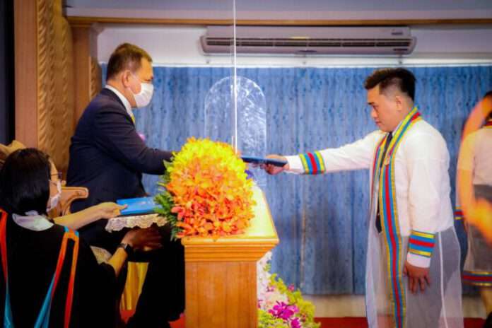 วันที่ 1 มีนาคม 2564 เวลา 11.00 น. ที่ห้องประชุมส้มแขก อาคารศูนย์วิทยบริการ วิทยาลัยชุมชน อำเภอเทพา จังหวัดสงขลา พลเรือตรี สมเกียรติ ผลประยูร เลขาธิการ ศอ.บต. เป็นประธานในพิธีประสาทอนุปริญญาบัตรแก่ผู้สำเร็จการศึกษาวิทยาลัยชุมชนสงขลา ประจำปีการศึกษา 2562 โดยเข้ารับอนุปริญญาบัตร จำนวน 141 คน ประกอบด้วย สาขาวิชาการศึกษาปฐมวัย จำนวน 33 คน สาขาวิชาการปกครองท้องถิ่น 57 คน สาขาวิชาคอมพิว เตอร์ธุรกิจ จำนวน 25 คน สาขาวิชาการจัดการทั่วไป จำนวน 6 คน และหลักสูตรประกาศนียบัตรวิทยาลัยชุมชนสงขลา จำนวน 20 คน นอกจากนี้ ยังมีการมอบโล่ประกาศเกียรติคุณด้านต่าง ๆ แก่บุคคล หน่วยงาน หรือองค์กรที่ได้รับการยกย่องเชิดชูเกียรติ ประจำปีการศึกษา 2562 อีกด้วย โดยมี รองผู้ว่าราชการจังหวัดสงขลา ผู้อำนวยการสถาบันวิทยาลัยชุมชน ประธานกรรมการสภาวิทยาลัยชุมชนสงขลา ผู้อำนวยการวิทยาลัยชุมชนสงขลา คณะอาจารย์และเจ้าหน้าที่ที่เกี่ยวข้องร่วมในพิธี