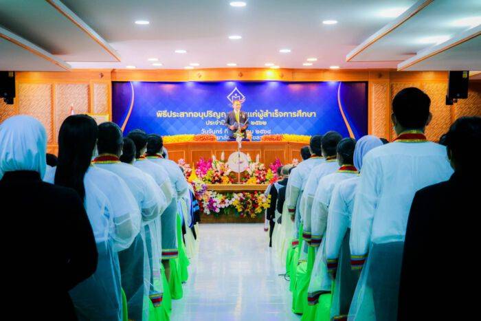 พลเรือตรี สมเกียรติ ผลประยูร เลขาธิการ ศอ.บต.ได้กล่าวให้โอวาทแก่ผู้สำเร็จการศึกษาว่า ขอแสดงความยินดีกับทุกคนและครอบครัว และคณะอาจารย์ที่ได้ผลิตบัณฑิตที่มีคุณภาพสู่สังคม ซึ่งในขณะนี้สถานการณ์ของโลกได้เปลี่ยนไปคือ วิทยาการสมัยใหม่ เทคโนโลยีสมัยใหม่ โลกดิจิทัล ทำให้สังคมโลกเปลี่ยนแปลง มีนวัตกรรมใหม่ๆ เกิดขึ้นมากหมายในยุคปัจจุบันทำให้วิถีชีวิตและการประกอบอาชีพเปลี่ยนไป รวมทั้งการเปลี่ยนแปลงของสภาพอากาศของโลก ทำให้ฤดูกาลเปลี่ยนไปจากอดีต รวมถึงโรคระบาดต่างๆ ทำให้เกิดการเปลี่ยนแปลงทั้งด้านการเดินทางระหว่างประเทศ การศึกษา ซึ่งในอนาคตข้างหน้าสถานศึกษาจะเป็นส่วนสำคัญที่ขับเคลื่อนพัฒนาพื้นที่