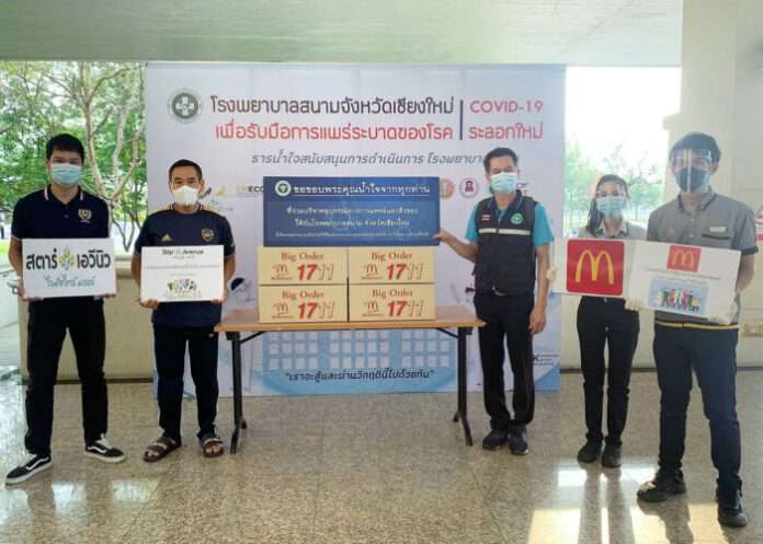 บริษัท แมคไทย จำกัด ผู้นำธุรกิจอาหารบริการด่วน ภายใต้แบรนด์ แมคโดนัลด์ ในประเทศไทย และ สตาร์ เอวีนิว ไลฟ์สไตล์ มอลล์ ศูนย์การค้าชั้นนำใน จ.เชียงใหม่ ร่วมส่งมอบเมนูแสนอร่อย เพื่อเป็นกำลังใจให้กับทีมบุคลากรทางการแพทย์ ที่ทุ่มเทปฏิบัติงานอย่างเต็มความสามารถ ในการรับมือกับสถานการณ์การแพร่ระบาดของโรคติดเชื้อไวรัสโคโรนา 2019 (COVID-19) ระลอกที่ 3 พร้อมให้การดูแลรักษาผู้ป่วยเป็นอย่างดี ณ โรงพยาบาลสนาม จ.เชียงใหม่