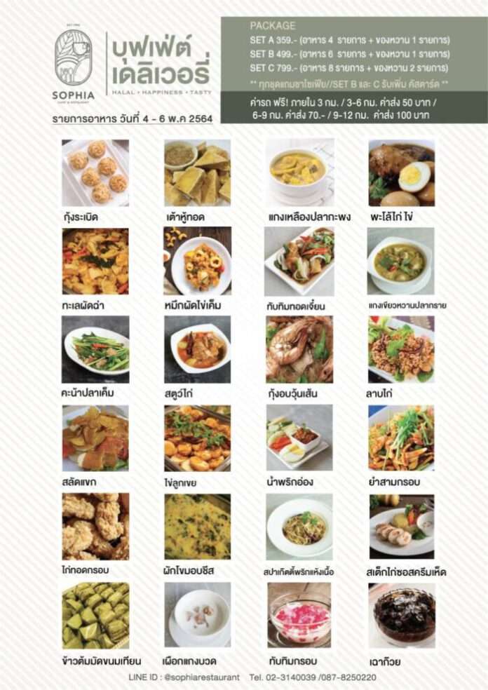 ร้านอาหารโซเฟีย * New Menu * บุฟเฟ่ต์เดลิเวอรี่ สำหรับวันที่ 4 พ.ค. – 6 พ.ค 2564