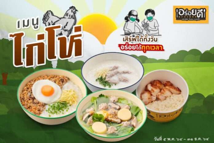 ใครๆ ก็รู้ว่ามื้อเช้าสำคัญมากๆ ร้าน “อร่อยดี” เตรียมความพร้อม เสิร์ฟความอร่อยให้ทุกท่าน ตั้งแต่ยามเช้าของวัน ด้วยสารพัดเมนูยอดนิยม ที่สร้างความอิ่มอร่อย อุ่นท้อง แถมราคาพิเศษเบาใจ ช่วงโควิดให้ผ่านไปด้วยกัน …. เริ่มต้นยามเช้ากับร้านอร่อยดีด้วย “เมนูไก่โห่” เตรียมพร้อมเสิร์ฟให้ลูกค้าเลือก คัดสรรเมนูเด็ดจาก 3 ร้านดัง #อร่อยดี #เจ๊เกียงหมูทอดข้าวเหนียวนุ่ม #เจ๊เกียงโจ๊กกองปราบ ผนึกกำลัง ยกขบวนเมนูยอดนิยม ควรค่าแก่การหม่ำในตอนเช้า อาทิ แกงจืดเต้าหู้หมูสับ + ข้าวสวย ราคา 79 บาท (ปกติ 109 บาท) โจ๊กไข่ข้นหมูสับ 65 บาท โจ๊กกะเพราหมูสับ 65 บาท โจ๊กไข่ข้นกุ้งสับ 85 บาท โจ๊กหมูกระเทียมพริกไทยเห็ดหอม+ ไข่ดาวน้ำ 85 บาท โจ๊กเครื่องใน 55 บาท โจ๊กหมู 45 บาท โจ๊กเด็ก 30 บาท โจ๊กเปล่า 20 บาท
