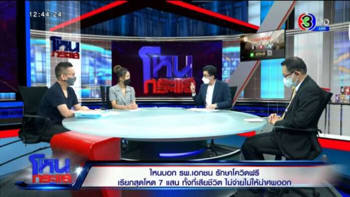 นพ.จเด็จ : ต้องเรียนให้ทราบว่าโควิดเป็นโรคติดต่อร้ายแรง คนไทยคนใดก็ตามติดโควิดต้องรักษาฟรี กรณีนี้ต้องเรียนว่าเป็นหนึ่งในสี่สาเหตุ ที่รพ.เอกชนมักจะเรียกเก็บผู้ป่วย อันนี้เป็นความเข้าใจผิดของรพ. ผมได้โทรประสานกับผอ.รพ.แล้ว เขาจะคืนเงินทั้งหมดให้นะครับ ความเข้าใจผิดของรพ. คือคิดว่าถ้าไปตรวจที่รพ.แรกแล้วไม่ยอมรับ การที่มารพ.ที่สอง รพ.ที่สองไม่รู้จะเก็บจากใคร จริงๆ กติกาท่านจะไปตรวจรพ.ไหนต้องรับ เป็นเรื่องการบริการ. แต่ถ้าเตียงเต็ม อีกรพ.เป็นผู้รับก็สามารถมาเบิกสปสช.ได้ เหมือนรพ.แรก แต่ท่านไม่เข้าใจ กรณีคุณดอร์จไม่เก็บเลย เพราะว่าไปตรวจที่เขา แต่ท่านไม่เข้าใจกติกาไปเรียกเก็บจากผู้ป่วยเลยทำให้เรื่องนี้เศร้า ไม่ควรเป็นแบบนี้ ควรจะราบรื่น เพราะท่านสามารถเรียกเก็บจากสปสช. วันนี้เราไปทำความเข้าใจแล้ว ปัญหาตรงนี้คือทำยังไงให้รพ.ทุกแห่งเข้าใจกติกาว่านโยบายรัฐบาลคือทุกกรณีโควิดไม่ว่ารักษารพ.รัฐหรือเอกชน รักษาฟรี ให้มาเก็บจากสปสช. ในราคาที่ท่านเสนอมาอยู่แล้ว ไม่ใช่ราคาที่เรากำหนด การคืนเงินประชาชน ไม่ได้หมายความว่าท่านไม่ได้รับการชดเชย แต่จะเป็นการชดเชยในราคาที่ท่านเสนอมา