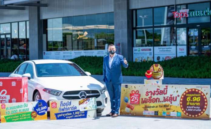 นายสเตฟาน คูม ประธานเจ้าหน้าที่บริหาร บริษัท เซ็นทรัล ฟู้ด รีเทล จำกัด ในเครือเซ็นทรัล รีเทล กล่าวว่า “ตลอดระยะเวลา 25 ปี ของการดำเนินธุรกิจ ท็อปส์พร้อมยืนหยัดเคียงข้างลูกค้าในทุกสถานการณ์ มุ่งมั่นนำเสนอสินค้าคุณภาพและบริการชั้นเลิศ มอบความคุ้มค่า คุ้มราคาในทุกการจับจ่าย พร้อมทั้งให้ความสำคัญกับการทำวิจัยและสำรวจพฤติกรรมความต้องการของผู้บริโภคมาโดยตลอด เราไม่เคยหยุดนิ่งในการพัฒนาแม้แต่วันเดียว เพื่อนำผลลัพธ์ที่ได้มาใช้พัฒนาสินค้าและบริการให้ดีมากยิ่งขึ้นกว่าเดิม สามารถตอบสนองความต้องการและสร้างความพึงพอใจสูงสุดให้กับลูกค้า และเพื่อแสดงความขอบคุณให้กับทุกความไว้วางใจที่ลูกค้ามีให้ท็อปส์มาตลอด 25 ปี เราได้สร้างสรรค์แคมเปญสุดพิเศษซึ่งเกิดขึ้นจากการสำรวจความคิดเห็นของกลุ่มลูกค้าตัวอย่างของท็อปส์พบว่าร้อยละ 60 ชื่นชอบโปรโมชั่นแบบลุ้นรางวัลมากที่สุด และต้องการเลือกของรางวัลที่ตัวเองต้องการ จึงเป็นที่มาของแคมเปญลุ้นรางวัลครั้งยิ่งใหญ่แบบที่ไม่เคยเกิดขึ้นมาก่อน “รางวัลนี้…ได้เลือกได้ลุ้น” (Celebrate as You Wish) โดยท็อปส์จัดเตรียมของรางวัลกว่า 1,602 รางวัล รวมมูลค่ากว่า 6.96 ล้านบาท มอบเป็นของขวัญให้ลูกค้าเลือกลุ้นเป็นเจ้า ของรางวัลที่ตนเองชื่นชอบให้ตรงกับความต้องการ นับเป็นอีกหนึ่งกลยุทธ์โปรโมชั่นทางการตลาดที่สอดคล้องกับเทรนด์พฤติกรรมของผู้บริโภคในปัจจุบัน ที่นอกจากเลือกซื้อสินค้าที่สามารถแสดงความเป็นตัวตนแล้ว การมอบประสบ การณ์เพื่อทำให้ลูกค้ารู้สึกถึงความเป็นคนพิเศษก็ยิ่งทำให้เกิดความประทับใจมากยิ่งขึ้น”