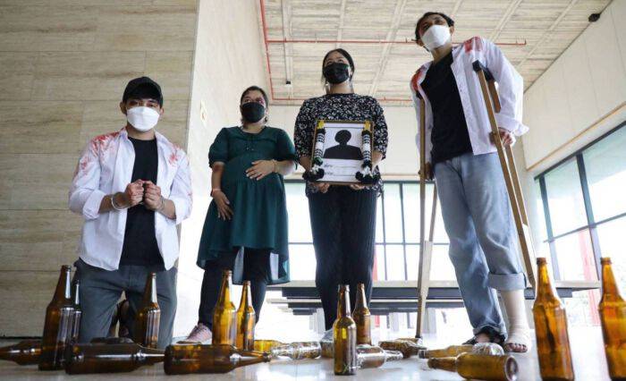 ทั้งนี้ เครือข่ายภาคประชาชน ได้แต่งกายสะท้อนผลกระทบจากเครื่องดื่มแอลกอฮอล์ในหลายมิติ ทั้งอุบัติเหตุ ความรุนแรงในครอบครัว ทะเลาะวิวาท อาชญากรรม ผู้ป่วย โดยมีการชูป้ายข้อความ เช่น เมาแล้วขับทำคนตาย19,000 บาด เจ็บนับล้าน พิการ 60,000 ต่อ ปี เด็กในสถานพินิจกว่าร้อยละ 40 ก่อคดีภายใน 5 ชั่วโมงหลังดื่ม และข่าวความรุนแรงในครอบครัว มีสุราเกี่ยวข้อง กว่าร้อยละ 20 เป็นต้น