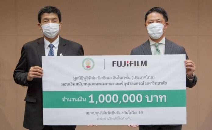 มูลนิธิฟูจิฟิล์มฯ นำโดย มร.มาซาอากิ ยานากิย่า ประธานบริษัท ฟูจิฟิล์ม บิสซิเนส อินโนเวชั่น (ประเทศไทย) จำกัด และประธานมูลนิธิฯ มอบเงินจำนวน 1 ล้านบาท แก่ รศ.นพ. ฉันชาย สิทธิพันธุ์ คณบดี คณะแพทยศาสตร์ จุฬาลงกรณ์มหาวิทยาลัย เพื่อสนับสนุนกองทุนวิจัยและพัฒนาวัคซีน ChulaCov19 คณะแพทยศาสตร์ จุฬาลงกรณ์มหาวิทยาลัย และยังมอบเงินอีก 1 ล้านบาท แก่ ศ.นพ.พรชัย สิมะโรจน์ ผู้ช่วยคณบดีฝ่ายกิจการพิเศษ คณะแพทยศาสตร์โรงพยาบาลรามาธิบดี มหาวิทยาลัยมหิดล เพื่อสมทบทุนโครงการป้องกันและช่วยเหลือสถานการณ์แพร่ระบาดของเชื้อไวรัสโควิด-19