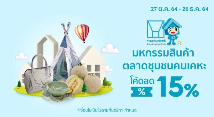 ทั้งนี้ แคมเปญพิเศษ “มหกรรมสินค้า ตลาดชุมชนคนเคหะ” บนแพลตฟอร์ม Shopee ขึ้นระหว่าง 27 ตุลาคม – 26 ธันวาคม 2564 จำหน่ายสินค้าหลากหลายจากผู้อยู่อาศัยในโครงการ/ชุมชนของการเคหะแห่งชาติ ทั่วประเทศในราคาพิเศษ พร้อมโปรโมชั่นและโค้ดส่วนลด ผ่านไมโครไซต์ https://shopee.co.th/NHA