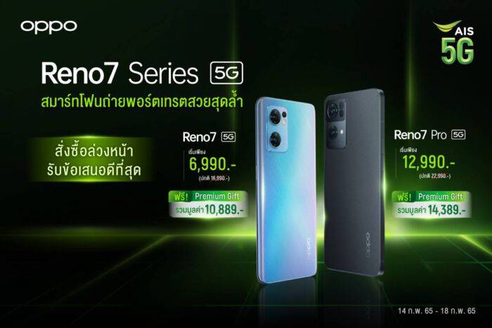 OPPO ผนึกเอไอเอส มอบโปรโมชันแบบจัดเต็ม! จอง OPPO Reno7 Series 5G สมาร์ทโฟน 5G ที่ถ่ายวิดีโอพอร์ตเทรตได้ดีที่สุด ในราคาเริ่มต้นเพียง 6,990 บาท!