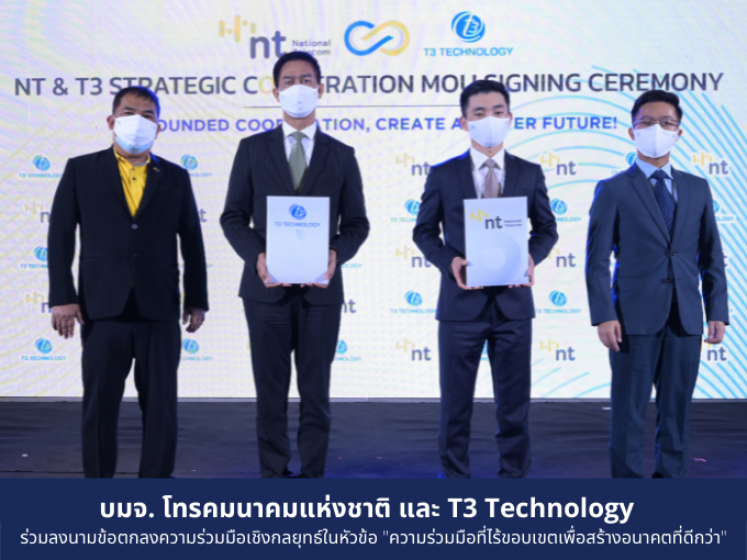 บมจ. โทรคมนาคมแห่งชาติ และ T3 Technology ร่วมลงนามข้อตกลงความร่วมมือเชิงกลยุทธ์ในหัวข้อ “ความร่วมมือที่ไร้ขอบเขตเพื่อสร้างอนาคตที่ดีกว่า”