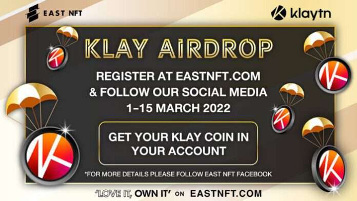 EAST NFT แพลตฟอร์มซื้อขายแลกเปลี่ยนผลงาน NFT ระดับพรีเมียมแห่งอาเซียนร่วมกับ Klaytn บล็อกเชนชั้นนำจากเกาหลี เตรียมแจกครั้งใหญ่ “เหรียญ Klay Token” มูลค่ารวม 250,000 บาท บน EASTNFT.COM ให้กับสมาชิก 1,000 สิทธิ์แรกที่เข้าร่วมสนุกทำภารกิจเพื่อลุ้นรับเหรียญ Klay Token อย่างถูกต้องครบถ้วนตามกติกาที่ EAST NFT กำหนดไว้ เท่านั้น