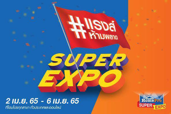 งาน HomePro SUPER EXPO ครั้งนี้ จะจัดขึ้นตั้งแต่วันที่ 2 เมษายน 65 – 6 เมษายน 65 รวม 5 วันเท่านั้น พบความพิเศษจากขบวนสินค้าเรื่องบ้าน และของตกแต่งบ้าน อัพเดทเทรนด์ใหม่รับหน้าร้อน ครบครันทุกแผนกให้เลือกสรร ไม่ว่าจะเป็น เครื่องใช้ไฟฟ้า, เฟอร์นิเจอร์, อุปกรณ์ห้องน้ำ, อุปกรณ์ครัว, ชุดห้องนอน, ห้องนั่งเล่น, สวน และอุปกรณ์ตกแต่ง, สินค้าปรับปรุง และซ่อมแซมบ้าน และอีกมากมาย พร้อมคุ้มค่ากว่าครั้งไหน ๆ #แรงส์ห้ามพลาด !! กับสินค้า Super Deal ลดสูงสุดถึง 80% คอมโบความคุ้มต่อเนื่องกับสินค้าแบรนด์ชั้นนำใน Super Brand ลดเพิ่มสูงสุดอีก 10%!!