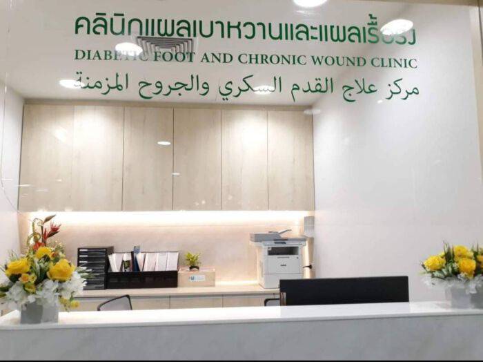 ผู้ป่วยที่มีแผลแล้วรักษาไม่หายมานานเกินกว่า 1 เดือน สามารถขอคำปรึกษา วินิจฉัยและดูแลรักษา ฟื้นฟูได้ทุกเคส เปิดให้บริการทุกวันจันทร์ และ วันศุกร์ เวลา 13:00 – 14:00 น. ติดต่อ 02 530 2556 – 69 ต่อ 3200