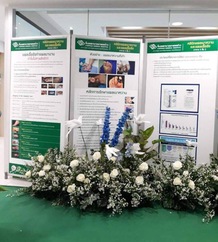 “คลีนิคแผลเบาหวานและแผลเรื้อรัง” โรงพยาบาลลาดพร้าว ภายใต้การดูแลรักษาโดย รศ.นพ.ณรงค์ชัย ยิ่งศักดิ์มงคล ศัลยแพทย์ผู้เชี่ยวชาญเฉพาะทาง ด้านการรักษาแผลเบาหวานและแผลเรื้อรัง ด้วยนวัตกรรมการรักษาแผลเบาหวานและแผลเรื้อรัง จากผลงานการวิจัยระดับนานาชาติ พร้อมบริการดูแลรักษาผู้ป่วยแผลเบาหวาน แผลขาดเลือด แผลเส้นเลือดขอด แผลกดทับ และแผลเรื้อรังอื่น ๆ ทุกชนิด มุ่งเน้นลดการสูญเสียอวัยวะของผู้ป่วย ทำให้ผู้ป่วยได้มีคุณภาพชีวิตที่ดีต่อไป