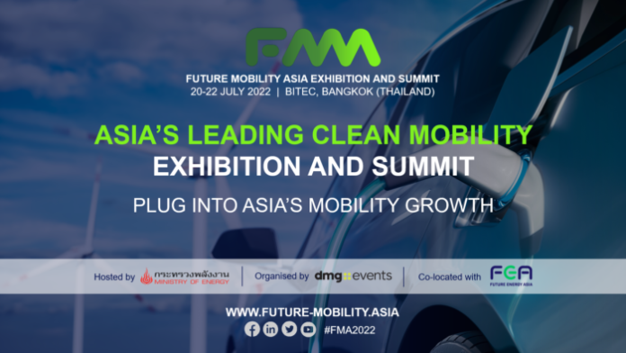 ฟิวเจอร์ โมบิลิตี้ เอเชีย (Future Mobility Asia) หรือ เอฟเอ็มเอ 2022 (FMA 2022) จะจัดขึ้นระหว่างวันที่ 20 ถึง 22 กรกฎาคม 2022 ณ ศูนย์นิทรรศการและการประชุมไบเทค (BITEC) เพื่อนำเสนอแนวคิด โซลูน เทคโนโลยี นวัตกรรมใหม่ด้านยายนต์แห่งอนาคต โดยงานนี้จะจัดพร้อมกับงานฟิวเจอร์ เอนเนอร์ยี เอเชีย (Future Energy Asia) ซึ่งเป็นงานนิทรรศการและการประชุมเกี่ยวกับการพัฒนาและการเปลี่ยนแปลงด้านพลังงานระดับภูมิภาคเอเชีย