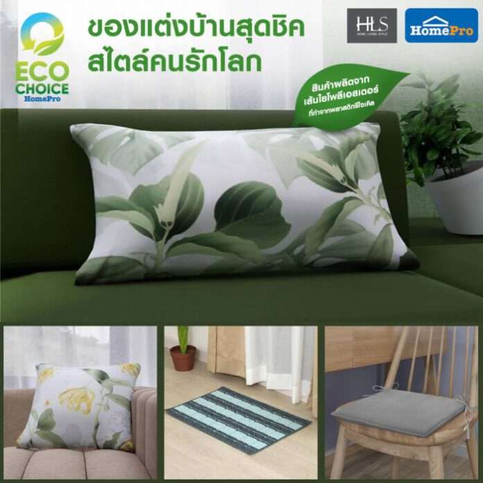 HOME LIVING STYLE ชวนคุณเติมความโดดเด่นให้บ้านในสไตล์คนรักโลก ไปกับของแต่งบ้านสุดชิค ที่ถักทอด้วยเส้นใยโพลีเอสเตอร์คุณภาพสูงจากพลาสติกรีไซเคิล ตอบโจทย์ไลฟ์สไตล์อย่างครบครัน จะตกแต่ง หนุน นั่ง กอด อิง หรือพิงหลัง ก็ผ่อนคลายแถมบ้านดูดีได้แบบ ECO CHOICE ไม่ว่าจะ หมอนอิงกันน้ำพิมพ์ลายคลาสสิก ทำจากโพลีเอสเตอร์ผสานเส้นใยสังเคราะห์คุณภาพ ให้สัมผัสนุ่มสบายยืดหยุ่นสูง ระบายอากาศได้ดี พร้อมรองรับสรีระผู้ใช้ได้ทุกการพักผ่อน หมอนอิง-เบาะรองนั่งใส้ในโพลีเอสเตอร์ และปลอกหุ้มคอตตอนเนื้อนุ่มสบาย ออกแบบสวยงามทันสมัย ทรงกะทัดรัดน้ำหนักเบา คืนรูปได้ดีรับการใช้งานได้อเนกประสงค์ และพรม 3 ดีไซน์ จากโพลีเอสเตอร์ยืดหยุ่นสูง แทรกความปลอดภัยด้วยกันลื่นเม็ดดอต ทำให้ยึดเกาะพื้นผิวได้ดี ผสมกับการทอแบบ Cut Loop ช่วยคงความหนาแน่นเส้นใย เพิ่มคุณสมบัติแข็งแรงทนทาน และสร้างลวดลายเฉพาะเข้ากับการตกแต่งพื้นที่ได้หลายสไตล์
