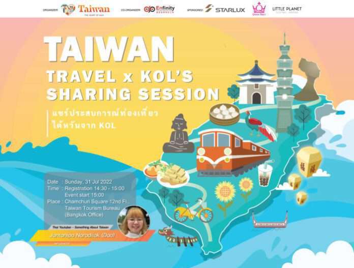 สำนักงานการท่องเที่ยวไต้หวัน เตรียมอัปเดตข้อมูลท่องเที่ยวสุดเอ็กซ์คลูซีฟ ภายในงาน “แชร์ประสบการณ์ท่องเที่ยวไต้หวันจาก KOL” โดยครั้งนี้จับมือร่วมกับ KOL ทั้งหมด 6 ท่าน มาร่วมพูดคุยแชร์ประสบการณ์ในไต้หวัน รวมถึงข้อมูลแหล่งท่องเที่ยวต่าง ๆ พร้อมพาร์ทเนอร์ ในงาน อาทิ สายการบิน Starlux และ Queen Mary แบรนด์มาร์กหน้าไต้หวันยอดนิยมตลอด 18 ปี กิจกรรมนี้จัดแบบมาราธอนตลอด 6 เดือน โดยทุกเดือนจะมี KOL 1 ท่านมาร่วมแชร์ประสบการณ์ ที่น่าสนใจเกี่ยวกับไต้หวันในทุกแง่มุม งานจะจัดขึ้นครั้งแรก ในวันอาทิตย์ที่ 31 กรกฎาคม นี้ เวลา 15:00 น. เป็นต้นไป ณ สำนักงานการท่องเที่ยวไต้หวัน ชั้น 12 ตึกจามจุรีสแควร์ สำหรับ KOL ท่านแรกคือ คุณจันทนิภา นราดิลก หรือ คุณดาว Youtuber ช่อง Something About Taiwan ภรรยาชาวไทยที่แต่งงานกับคนไต้หวันมากว่า 3 ปี มาร่วมแชร์เรื่องราวของอาหารท้องถิ่นของไต้หวันและชี้เป้าร้านอาหารที่ไม่ควรพลาด