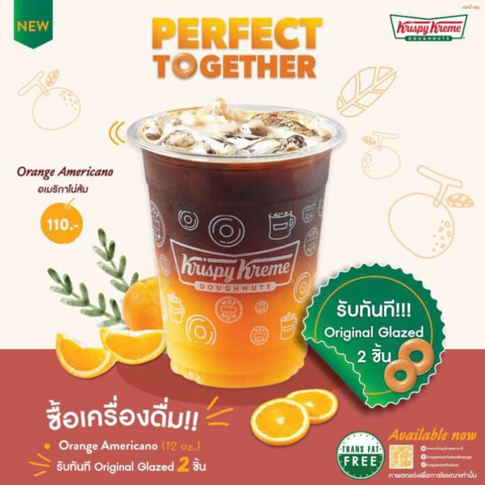 คริสปี้ ครีม ประเทศไทย โดนัทสูตรลิขสิทธิ์อันดับ 1 ที่ครองใจคนทั่วโลก เสิร์ฟความสดชื่นที่จะปลุกคุณให้ตื่นพร้อมเดินทางด้วยโปรโมชั่นสุดพิเศษ “ Perfect Together” การจับคู่ความอร่อยของเครื่องดื่มสุดฮิตกับโดนัทเนื้อนุ่มขวัญใจแฟนคลับ เพียงซื้อ “Orange Americano” ขนาด 12 ออนซ์ จำนวน 1 แก้ว ในราคา 110 บาท รับโดนัทออริจินัล เกลซ 2 ชิ้น ทันที!! ตั้งแต่วันนี้ – 31 ธันวาคม 2565 เฉพาะร้านคริสปี้ ครีม สาขาสนามบินสุวรรณภูมิ และสนามบินดอนเมือง เท่านั้น