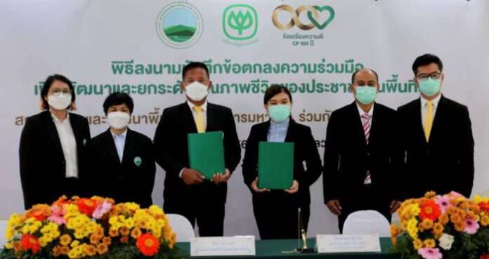 สถาบันวิจัยและพัฒนาพื้นที่สูง (องค์การมหาชน) หรือ สวพส. ร่วมกับ ฝ่ายพัฒนาความยั่งยืนภาครัฐ เครือเจริญโภคภัณฑ์ จัดพิธีลงนามบันทึกข้อตกลงความร่วมมือเพื่อพัฒนาและยกระดับคุณภาพชีวิตของประชาชนบนพื้นที่สูง (MOU) โดยมีวัตถุประสงค์เพื่อพัฒนาและยกระดับคุณภาพชีวิตของประชาชนบนพื้นที่สูงอย่างยั่งยืน ให้มีความอยู่ดีมีสุข มีความเข็มแข็ง และเป็นมิตรต่อสิ่งแวดล้อม ภายใต้เป้าหมายการพัฒนาที่ยั่งยืน (Sustainable Development Goals : SDGs) โมเดลเศรษฐกิจใหม่ BCG Economy และมุ่งไปสู่ความเป็นกลางทางคาร์บอน (Carbon Neutrality) และพัฒนาส่งเสริมอุทยานหลวงราชพฤกษ์ ให้เป็นแหล่งเรียนรู้ความเป็นกลางทางคาร์บอน (Carbon Neutrality) ในปี พ.ศ. 2570 ผ่านกิจกรรม นิทรรศการ ศูนย์การเรียนรู้ ฯลฯ ให้เกิดประโยชน์ที่ดีต่อชุมชนและสังคม