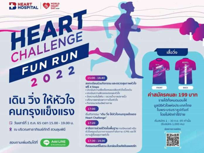 “HEART CHALLENGE FUN RUN 2022” เดิน วิ่ง ให้หัวใจคนกรุงแข็งแรง วันเสาร์ที่ 1 ตุลาคม 2565