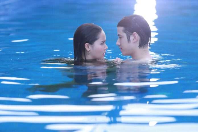โดยเป็นตอนที่ ก้าวกล้า (มาริโอ้ เมาเร่อ) หายตัวไป ไม่รู้ว่าเป็นตายร้ายดีอย่างไร ทำให้สายขิม (ญาญ่า อุรัสยา เสปอบันด์) เป็นห่วงเป็นใย ออกตามหาจนเจอว่าไปพักอยู่ที่บ้านพักบนเกาะ บาดเจ็บด้วย ก็เลยคอยดูแล ปรับความเข้าใจกัน บอกรัก คืนดีกัน กอดหอมกันอย่างมีความสุข ก่อนที่ก้าวกล้าจะโดดลงไปในน้ำ ตอนแรกสายขิมตกใจ เพราะคิดว่าก้าวกล้ายังบาดเจ็บอยู่ แต่เห็นลีลาว่ายน้ำเล่นของก้าวกล้า เธอก็ต่อว่าเพราะยังไม่หายดี แต่โดดน้ำ ว่ายน้ำขนาดนี้ ก้าวกล้าไม่สนใจ ดึงสายขิมลงน้ำเสียอีก หยอกล้อจนสายขิมอยากจะโกรธพ่อตัวดี