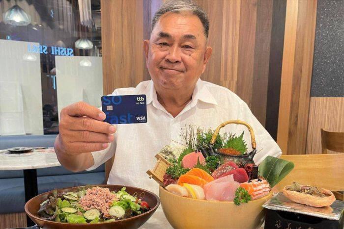 ส่วน “ลุงอ้วน” อนุสร ตันเจริญ เจ้าของเพจและช่องยูทูป “ลุงอ้วน กินกะเที่ยว” ชวนไปชิมปลาดิบ ที่ ร้าน Sushi Seki พร้อมเมนูอร่อย ไม่ว่าจะเป็นน้ำแกงกะหรี่ ข้าวหน้าโอโทโร่ส้ม มันปูร้อน ๆ Hokkaido Kani Miso Yaki และเมนูเนื้อ Wagyu Omu Curry Don ที่พิเศษไปกว่านั้นคือ ลูกค้าที่ชำระค่าอาหารด้วยบัตรเครดิต ทีทีบี รับสิทธิพิเศษสั่ง Spicy Tuna Salad Yum Thai เพียง 159 บาท จากราคาปกติ 239 บาท