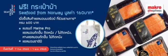 อิ่มอร่อยกับโปรโมชั่น “สัมผัสรสชาติแซลมอนจากนอร์เวย์ ได้ทุกวัน ที่แม็คโคร” พร้อมรับกระเป๋าผ้า ฟรี! ตั้งแต่วันนี้จนถึงวันที่ 1 พฤศจิกายน 2565