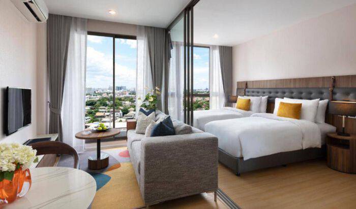 ท่องเที่ยวฟื้น ธุรกิจโรงแรม-ที่พักสุดคึกคัก ล่าสุด โอ๊ควูด สวีท ติวานนท์ เซอร์วิส เรสซิเดนซ์หรู มูลค่ากว่า 1,000 ล้าน เปิดตัวอย่างเป็นทางการ โดย ซีเอ็มซี กรุ๊ป รายใหญ่อสังหาฯ จับมือ โอ๊ควูด เผยเป็นจิ๊กซอว์สำคัญรุกธุรกิจโรงแรมและการบริการ