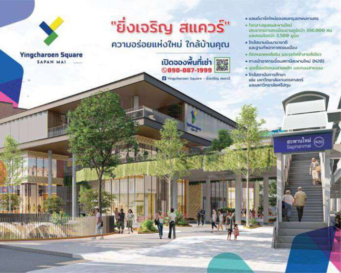 ตลาดยิ่งเจริญ เดินเครื่องพัฒนา “ยิ่งเจริญ สแควร์” แลนด์มาร์คใหม่ใจกลางสะพานใหม่ เพิ่มพื้นที่พาณิชย์และพักผ่อนกว่า 16,000 ตารางเมตร เชื่อมรถไฟฟ้า BTS สถานีสะพานใหม่ พร้อมเปิดให้บริการปลายปี 2566 นี้