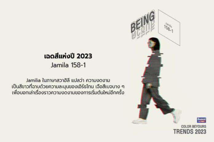โดยสีที่เป็นไฮไลต์จากทั้งหมด 30 เฉดสีหรือเฉดสีแห่งปี 2023 ได้แก่ Jamila 158-1 สีขาวที่ฉาบด้วยความละมุนของเอิร์ธโทน เจือสีเบจบาง ๆ สุดละมุน เพื่อบอกเล่าถึงเรื่องราวความงดงามของการเริ่มต้นใหม่ที่จะเกิดขึ้นอีกครั้ง หลังจากที่ได้ข้ามผ่านสถานการณ์ความสับสน กลับคืนสู่สภาวะปกติใหม่