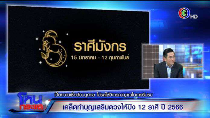 “ราศีมังกรเป็นราศีที่พ้นเคราะห์ เพราะดาวเสาร์เข้าราศีมังกร 2 ปีกว่า ปี 66 พ้นเคราะห์แล้ว แต่จะดีหมดเป็นไปไม่ได้ ฝากเตือนช่วงดาวเสาร์จะออก ปลายก.พ. เข้ามี.ค.ภาษาดวงเรียกว่าดาวถีบออก ดังนั้นคนราศีมังกรต้องระมัดระวังในช่วงนั้นมากเป็นพิเศษ เรื่องสุขภาพ เรื่องอุบัติเหตุ เรื่องอะไรก็ตาม แต่พอออกไปปุ๊บ ชีวิตคุณมีความก้าวหน้ามากขึ้นไปอีก เรื่องเงินก็โดดเด่นขึ้น ความสบายใจในชีวิตก็จะมีเข้ามามากขึ้น พอสบายใจเรื่องความรักหรือเรื่องอะไรก็ตาม มันก็จะดีตามไปหมด เลขของราศีมังกรแนะนำเลขตระกูลเลข 9 ซึ่ง 9 จะคู่กับ 8 ได้ดี 98 89 จะให้ผลเรื่องโชคลาภได้ดี หรือ 9 ที่คู่กับ 6 ก็ได้ 96 69 ก็เป็นเลขที่ดี เหมาะกับราศีมังกร ใครเกิดราศีมังกรก็ให้สบายใจได้ แต่ไทม์ไลน์ที่ดีคือช่วงมี.ค.ไปแล้ว ต้นปีเหนื่อยหนักเครียด ไปหามาใส่ใน 4 ตัวท้ายของเรา ควรเป็นเบอร์ที่คำนวณจากราศีเกิด จากวันเกิดของเรา จะได้ตรงกับตัวเรา มีความเฉพาะคุณมากกว่า ดังนั้นมังกรน่าจะยิ้มออกในปี 66 อยู่ในกลุ่มที่พ้นเคราะห์ ดวงดีขึ้น”