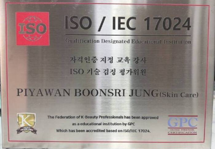 น.ส.ปิยวรรณ บุญศรี จอง ผู้อำนวยการฝ่ายบริหารงานต่างประเทศ K-Beauty เกาหลีใต้ ในฐานะเลขาธิการ K-Beauty ประเทศไทย เปิดเผยว่า มีเรื่องที่น่ายินดีอย่างยิ่งกับช่างฝีมือความงามเกาหลีใต้ เนื่องจากปัจจุบันนี้วิชาชีพช่างฝีมือความงามของ K-Beauty เกาหลีใต้ใน 4 สาขา ได้แก่ SPMU การสักเพื่อความงาม , SMP การสักผม ,SKIN CARE การดูแลผิว, EYELASH การต่อขนตา ได้รับการรับรอง ISO/IEC 17024 มาตรฐาน ISO ระดับโลกแล้ว เป็นการรับรองคุณสมบัติส่วนบุคคลในสาขาความงามแบบแบ่งส่วน เมื่อเดือนตุลาคม 2022 ที่ผ่านมา ซึ่งเป็นมาตรฐานการรับรองภายใต้การกำกับดูแลของ ISO (International Organization for Standardization) ถือว่าเกาหลีใต้เป็นประเทศแรกในโลกที่ได้รับการรับรองคุณวุฒิระดับนานาชาติที่เชื่อถือได้ในระดับสากลดังกล่าว เป็นการยกระดับมาตรฐานอาชีพช่างความงามให้เป็นที่เชื่อถือในระดับสากลอย่างแท้จริง
