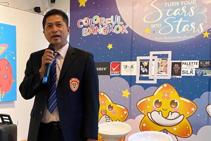 วันที่ 4 ก.พ.66 เวลา 10.30 น. ณ The Palette Artspace ปากซอยสุขุมวิท 55 (ทองหล่อ) กรุงเทพฯ : นาย ภณเอก ฤทธิ์ณประภา ประธานมูลนิธิเพื่อคนพิการและผู้ด้อยโอกาส ในฐานะเจ้าของโครงการ และ นางสาว มณิษษา มณีรัตน์ (mandi) หัวหน้าคณะทำงานโครงการ มูลนิธิฯ ร่วมเป็นประธานในพิธีเปิดงานนิทรรศการ ศิลปะ “แม้จะเจ็บปวด แต่คุณก็งดงาม”