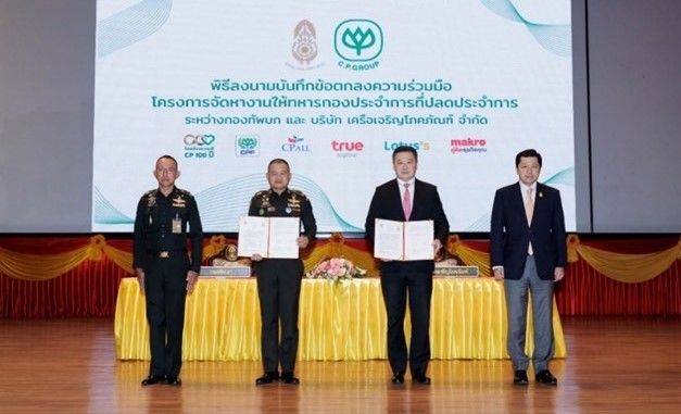 โลตัส ร่วมกับ เครือเจริญโภคภัณฑ์ และ กองทัพบก ใน โครงการจัดหางานให้แก่ทหารกองประจำการที่ปลดประจำการ เข้าร่วมพิธีลงนามบันทึกข้อตกลงความร่วมมือ ระหว่าง เครือเจริญโภคภัณฑ์ และ กองทัพบก โดยมีวัตถุประสงค์เพื่อพัฒนาความรู้ ทักษะความสามารถทหารกองประจำการ ให้มีความพร้อมในการประกอบอาชีพหลังปลดประจำการ โดยโลตัส พร้อมเปิดรับสมัครผู้ที่มีความพร้อม ความเชี่ยวชาญ และความเหมาะสมเข้าร่วมงาน กว่า 1,100 ตำแหน่ง กระจายในสาขาทั่วประเทศ เพื่อช่วยสร้างอาชีพในท้องถิ่นให้ทหารปลดประจำการและครอบครัว สามารถมีรายได้ที่มั่นคง ซึ่งเป็นส่วนหนึ่งในนโยบายด้านความยั่งยืนของโลตัสที่สอดคล้องกับเป้าหมายด้านความยั่งยืนของเครือเจริญโภคภัณฑ์ ด้านการสร้างคุณค่าและประโยชน์ทางเศรษฐกิจให้แก่สังคม