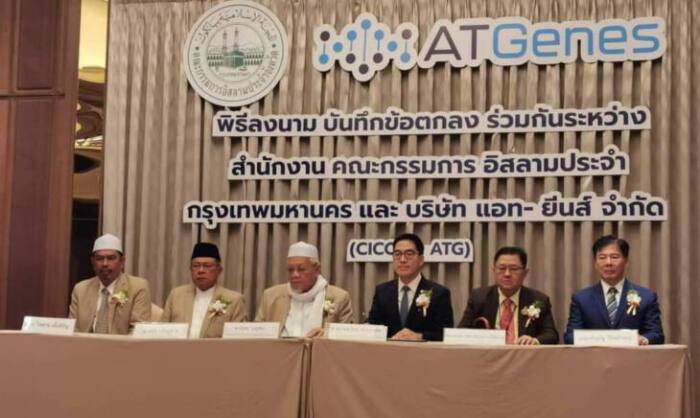 คณะกรรมการอิสลามประจำกรุงเทพมหานคร จัดพิธีลงนามบันทึกข้อตกลงร่วมกัน ระหว่าง สำนักงานคณะกรรมการอิสลามประจำกรุงเทพมหานคร (CICOB) กับ บริษัทแอท-ยีนส์ จำกัด (ATG) ซึ่งเป็นผู้เชี่ยวชาญด้านการตรวจทางห้องปฏิบัติการ โดยมี นายอรุณ บุญชม ประธานคณะกรรมการอิสลามประจำ กทม. และ ศ.ดร.นพ.วิปร วิประกษิต ประธานคณะกรรมการบริหารบริษัท แอท-ยีนส์ จำกัด ร่วมลงนาม ณ โรงแรม อัล มีรอซ กรุงเทพ ฯ เมื่อวันอังคาร ที่ 7 มีนาคม 2566