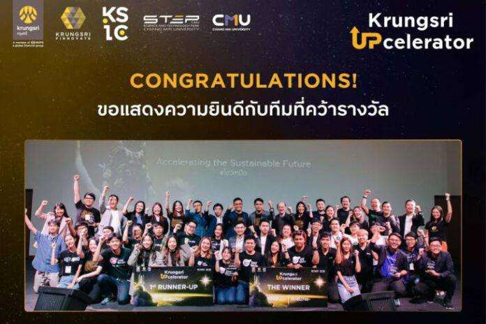 Krungsri UPcelerator เป็นโปรแกรมเฟ้นหาและบ่มเพาะเมล็ดพันธุ์แห่งสตาร์ทอัพไทยให้แข็งแกร่งและก้าวเดินอย่างมีคุณภาพ ภายใต้แนวคิด ‘Accelerating the Sustainable Future’ โดยโปรแกรมนี้เกิดขึ้นจากความร่วมมือกันระหว่าง กรุงศรี ฟินโนเวต และ อุทยานวิทยาศาสตร์และเทคโนโลยี มหาวิทยาลัยเชียงใหม่ หรือ STeP โดยแม้จะจัดขึ้นเป็นปีแรกแต่ประสบความสำเร็จอย่างมาก จากกว่า 104 ทีมที่สมัครเข้ามา คัดเน้นๆ ได้สตาร์ทอัพคุณภาพที่ผ่านด่านคัดเลือก จนได้ 12 ทีมสตาร์ทอัพที่มีโอกาสเข้าร่วมเวิร์คช้อปในบูทแคมป์สุดเข้มข้นจากรุ่นพี่ เหล่าซีอีโอ บริษัทสตาร์ทอัพไทยชื่อดังที่ประสบความสำเร็จจำนวนมาก โดยการเข้าแคมป์ครั้งนี้เป็นเวลาทั้งหมด 2 เดือน เพื่อเตรียมตัวสู่วัน ‘Demo Day’ วันตัดเชือกของเหล่าสตาร์ทอัพทั้ง 12 ทีมที่จะมาพรีเซนต์นำเสนอธุรกิจให้กับคณะกรรมการได้รับฟัง ณ อุทยานวิทยาศาสตร์และเทคโนโลยี มหาวิทยาลัยเชียงใหม่ (STeP)
