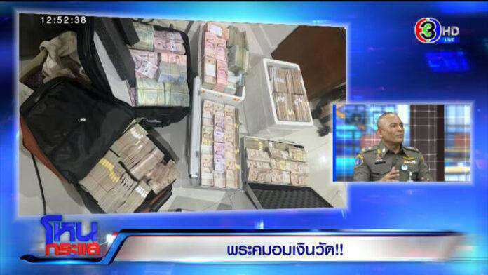 ที่มัดเป็นปึกๆ เชื่อว่าเป็นเงินจากการทำบุญใส่ซอง ตอนนี้อยู่ในสายกับลูกศิษย์อดีตพระคม “คุณเอ” ณ วันนี้ทราบข่าวตกใจมั้ย?