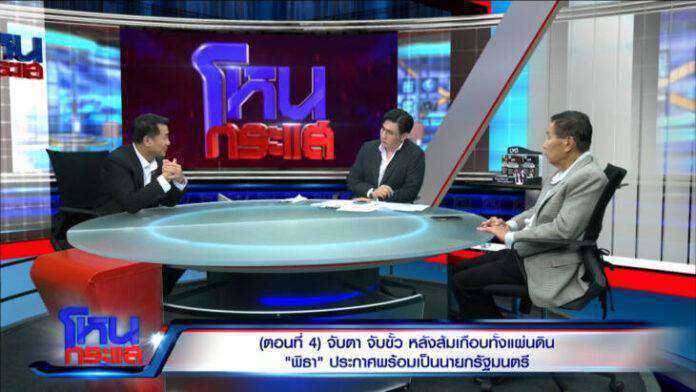 พล.ต.อ.เสรีพิศุทธ์ : เรียนตรงๆ ว่าครั้งนี้กระแสมันแรง ผมหวังว่าจะได้สัก 10 ที่นั่งมาช่วยพรรคประชาธิปไตย แต่ได้แค่เพียงหนึ่ง แต่หนึ่งยังไงก็ช่วย แต่เราจะไปเรียกร้องเอาโน่นเอานี่ไม่เหมาะสม อยู่ที่อำนาจผู้ที่จะเป็นนายกฯ เขาจะดำเนินการอย่างไร ทุกคนนะ ทีนี้ในอดีตนายกฯ จะแต่งตั้งคณะรัฐมนตรีดำรงตำแหน่งต่างๆ ใครเอาเสียงข้างมากมาได้ จำนวนส.ส.มีกี่คน ก็เอารัฐมนตรีไป คนนี้เป็นส.ส.กี่สมัยแล้ว ก็เป็นรัฐมนตรีไป ผมเรียนตรงๆ จากที่มีประสบการณ์ส.ส.แค่เพียงสมัยเดียว พวกนี้เป็นนักเลือกตั้ง เลือกตั้งทีไรก็ชนะทุกที แต่จะมาเป็นรัฐมนตรี บริหารประเทศชาติมันไม่ได้ นี่คือจุดอ่อนของประเทศเราเป็นแบบนี้ ยกตัวอย่างคุณประยุทธ์ตั้งรัฐบาลคราวที่แล้ว เอาพรรคโน้นพรรคนี้มาร่วม เขายึดกระทรวงใหญ่หมดเลย คุณประยุทธ์ก็ไม่กล้า คุณประยุทธ์ก็เป็นนายกฯ ไม่ได้ คุณประยุทธ์ก็เห็นแก่ตัว ขอให้กูอยู่ได้เถอะ