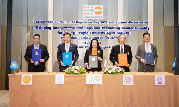 กองทุนประชากรแห่งสหประชาชาติ ประจำประเทศไทย (UNFPA Thailand) จัดงานวันประชากรโลก ประจำปี 2566 (The World Population Day 2023) ร่วมกันแสดงออกและตระหนักในประเด็นปัญหาของประชากรโลก ส่งเสริมสนับสนุนให้ความรู้สิทธิพื้นฐาน การวางแผนครอบครัว เพื่อนำไปสู่การมีประชากรโลกที่มีคุณภาพชีวิตที่ดี พร้อมจัดลงนาม MOU ร่วมกับ 4 หน่วยงานสำคัญ จัดเวทีเสวนา “Bridging Intergenerational Gaps and Promoting Gender Equality for Young People Towards Aged Society: พร้อมเชื่อมทุกกลุ่ม ทุกเพศ ทุกวัย ไปด้วยกัน” พร้อมด้วยการมอบรางวัล Social Media Contest โดยมีผู้แทนหน่วนงานองค์กรภาครัฐ ภาคประชาสังคม ภาคเอกชน นิสิตนักศึกษา สื่อมวลชน และผู้สนใจ ร่วมงานอย่างคับคั่ง