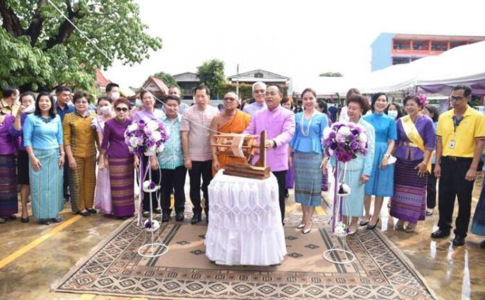 วันที่ 8 สิงหาคม 2566 ณ ศูนย์ทอผ้าจังหวัดนนทบุรี (รวมใจรักษ์มหาสวัสดิ์) วัดโคนอนมหาสวัสดิ์ อำเภอบางกรวย จังหวัดนนทบุรี นายสุธี ทองแย้ม ผู้ว่าราชการจังหวัดนนทบุรี เป็นประธานในพิธีเปิดศูนย์ทอผ้าจังหวัดนนทบุรี (รวมใจรักษ์มหาสวัสดิ์) พร้อมด้วย นางสุนิชฌาน์ ทองแย้ม ประธานแม่บ้านมหาดไทยจังหวัดนนทบุรี นางสาวอโรชา นันทมนตรี รองผู้ว่าราชการจังหวัดนนทบุรี นายอภิชัย อร่ามศรี รองผู้ว่าราชการจังหวัดนนทบุรี นางระวีพรรณ แก้วเพียงเพ็ญ รองผู้ว่าราชการจังหวัดนนทบุรี นางรักใจ กาญจนะวีระ พัฒนาการจังหวัดนนทบุรี หัวหน้าส่วนราชการระดับจังหวัด นายอำเภอบางกรวย คณะกรรมการเหล่ากาชาดจังหวัดนนทบุรี ผู้บริหารการไฟฟ้าฝ่ายผลิตแห่งประเทศไทย ผู้บริหารองค์กรปกครองส่วนท้องถิ่น ประธานศูนย์ผู้นำจิตอาสา ที่ปรึกษาพัฒนาการจังหวัด ผู้นำชุมชน ภาคีเครือข่าย และประชาชนในพื้นที่ เข้าร่วมเป็นเกียรติในพิธีเปิดศูนย์ทอผ้าจังหวัดนนทบุรี