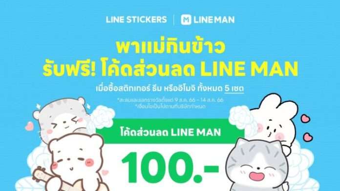 LINE STICKERS ร่วมฉลองวันแม่แห่งชาติ เปิดตัวสติกเกอร์ใหม่คอลเลคชันเทศกาลวันแม่ กว่า 200 เซ็ต พร้อมจัดแคมเปญสุดพิเศษ “พาแม่กินข้าว” เปิดโอกาสให้ลูกพาแม่กินข้าวแบบสุดคุ้ม เมื่อซื้อ LINE STICKERS หรือ Theme หรือ Emoji ชุดใดก็ได้ รวม 5 ชุด (ยกเว้นสติกเกอร์และธีมบางรายการที่ไม่เข้าร่วมกิจกรรมตามที่ระบุไว้ในข้อกำหนดและเงื่อนไขการร่วมสนุก คลิก : https://lin.ee/cy0mnFF/sknj/pr) ในช่วงวันที่ 9 – 14 สิงหาคมนี้ รับไปเลยโค้ดส่วนลดจาก LINE MAN มูลค่า 100 บาท เพื่อใช้เป็นส่วนลดในการสั่งอาหารและเครื่องดื่มผ่านแอปพลิเคชัน LINE MAN แคมเปญสุดคุ้มขนาดนี้ รีบมาเลือกซื้อและดาวน์โหลดไปใช้กันได้เลยที่ Sticker Shop: https://lin.ee/DV9EzAE/sknj/pr หรือ LINE STORE: https://lin.ee/NyD7Oez/sknj/pr