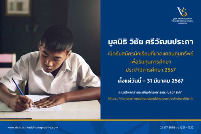 มูลนิธิ วิชัย ศรีวัฒนประภา เปิดรับสมัครนักเรียนที่ขาดแคลนทุนทรัพย์ เพื่อรับทุนการศึกษา ประจำปีการศึกษา 2567